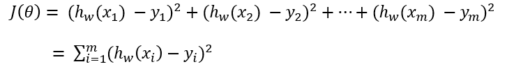 其中,yi为第i个训练样本的真实值,hw(xi)为第i个训练样本特征值组合预测函数,即误差的平方和,又称为最小二乘法。