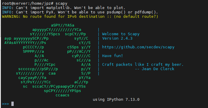 进入scapy命令行模式
