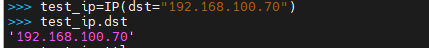 >>> test_ip=IP(dst="192.168.100.11") ##创建IP