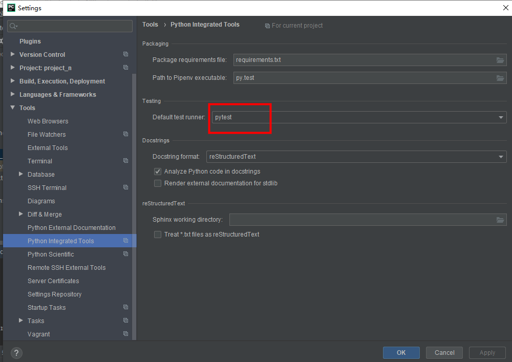 3.如果还不行就检查一下配置,设置----tools------Testing,选择pytest