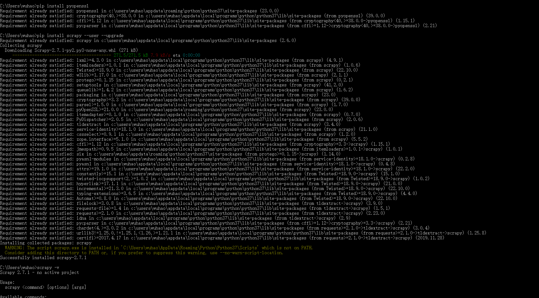 以上就是朴素口红最近收集整理的关于Scrapy 提示错误AttributeError: module ‘OpenSSL.SSL‘ has no attribute ‘SSLv3_METHOD‘的全部内容,更多相关Scrapy内容请搜索靠谱客的其他文章。
