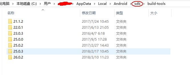 在你的SDK目录下,build-tools下,就能看到你的版本了,如果你每一次都用别人配置的版本,如果AS找不到,那么就会下载到这个目,这样很容易,你的SDK会膨胀得厉害,还会让工程加载比较久,因为需要去网上找资源,然后再装下来。