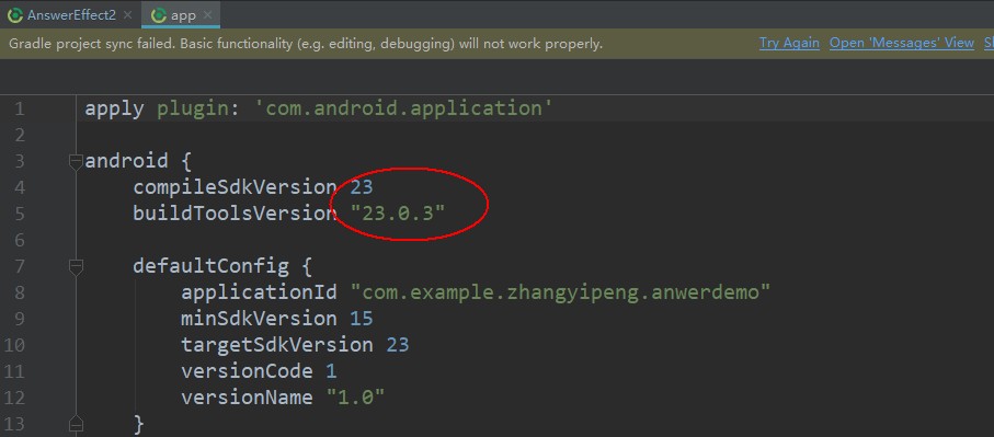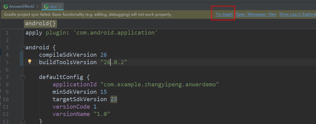 AndroidManifest不同于Gradle,有个try again,点击这个同步按钮即可