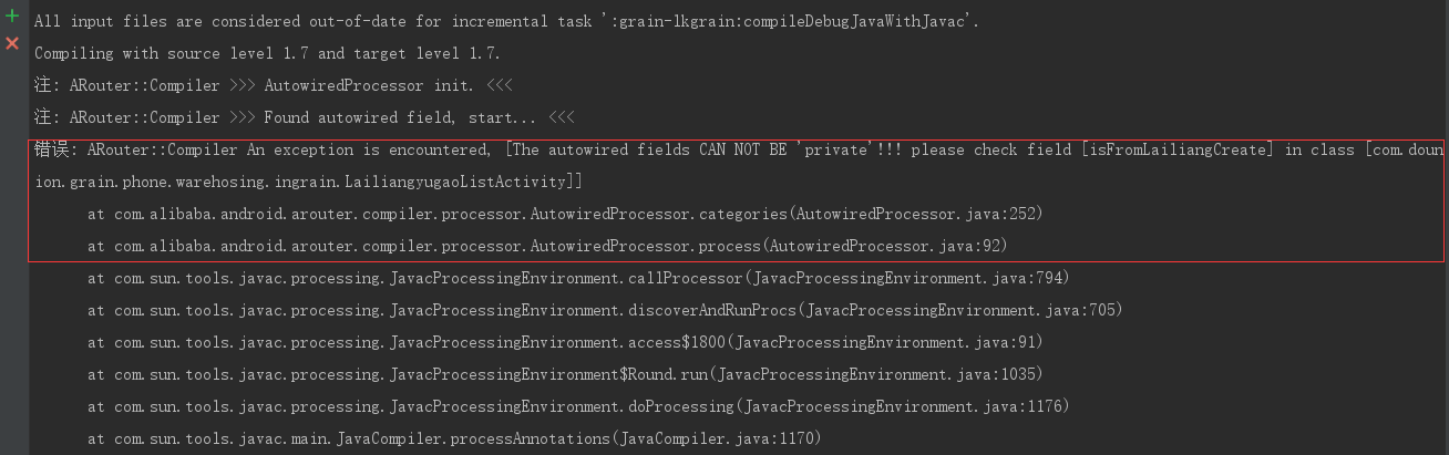 以上就是迷你巨人最近收集整理的关于org.gradle.api.internal.tasks.compile.CompilationFailedException: Compilation failed; see the compil的全部内容,更多相关org.gradle.api.internal.tasks.compile.CompilationFailedException:内容请搜索靠谱客的其他文章。