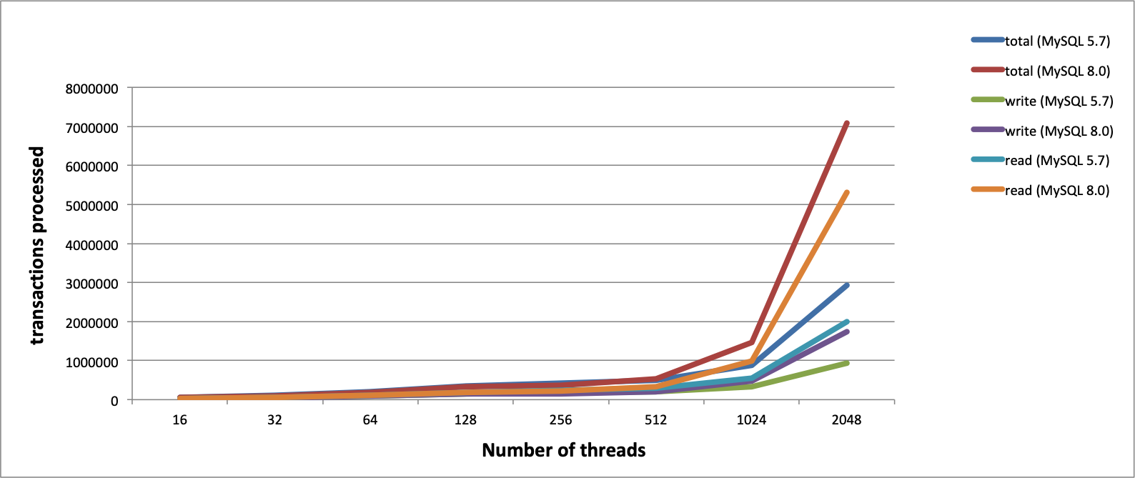 以上就是丰富飞机最近收集整理的关于MySQL和MySQL驱动mysql-connector-java升级到8.0.X版本一、MySQL升级到8.0.X版本二、升级MySQL驱动mysql-connector-java升级到8.0.X版本三、MySQL8.0和5.7性能对比的全部内容,更多相关MySQL和MySQL驱动mysql-connector-java升级到8内容请搜索靠谱客的其他文章。