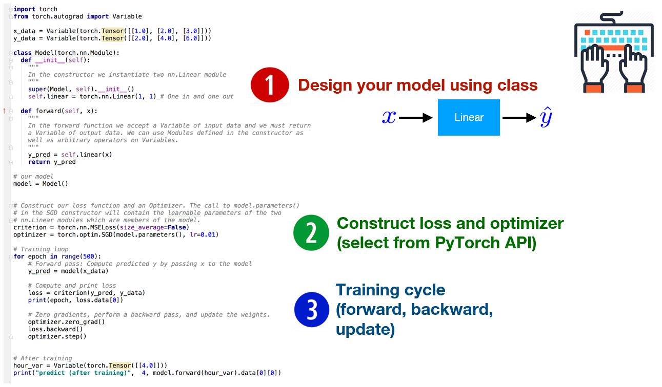 y_data = Variable(torch.Tensor([[2.0], [4.0], [6.0]]))
