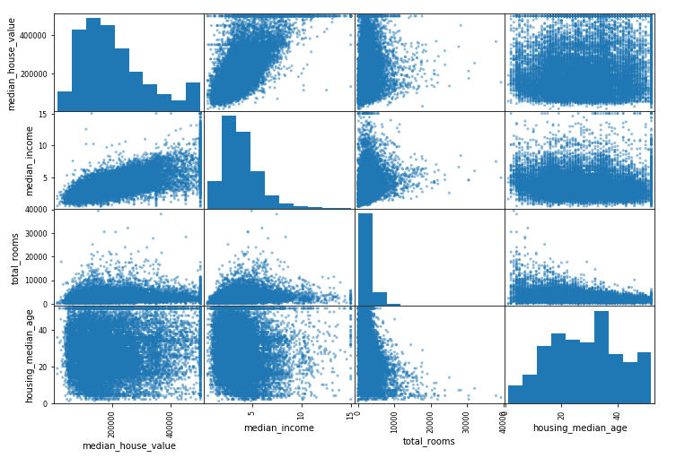 scatter_matrix(housing[attributes],figsize=(12,8)