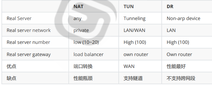 LVS一共有三种模型:NAT、DR(常用)、TUN