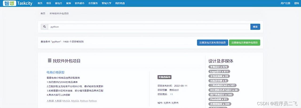 这个网站上面的python兼职比较简单,相对的薪资也会比较低,比较适合新手练练手。