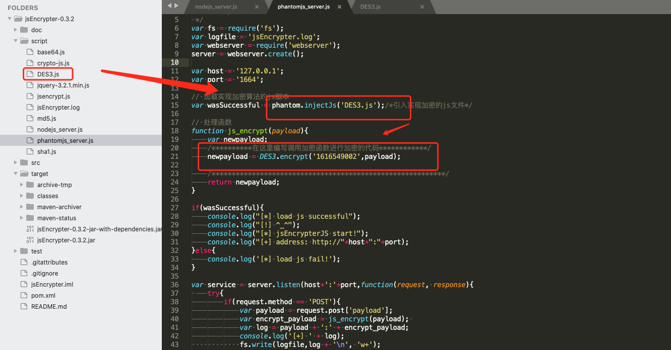 所以我们把DES3.js下载到本地,接下来修改phantomjs_server.js