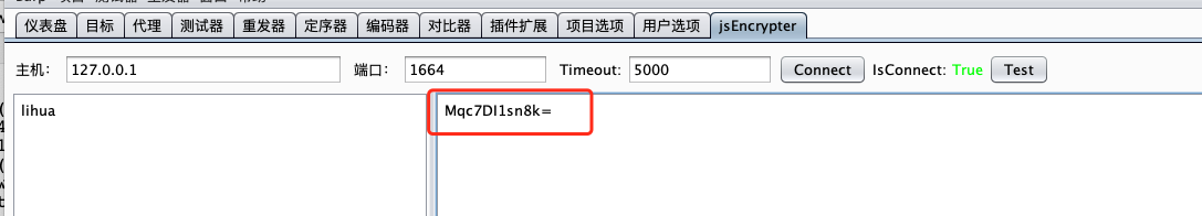 打开burp,测试输入 lihua,看看生成的加密字符串时候和原来的一样