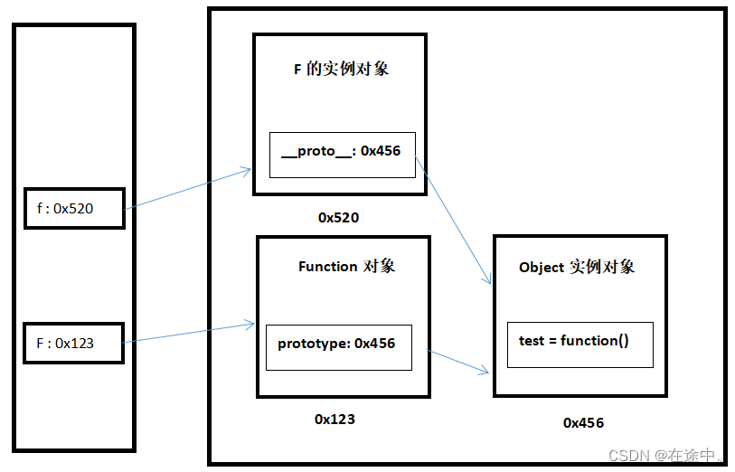 var f = new F() //创建实例对象时,内部产生语句: this.__proto__ = F.prototype