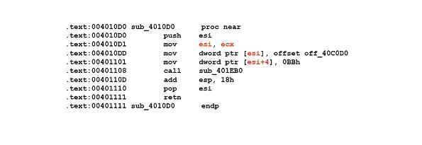 要识别出类的成员及类与类之间的关系,我们首先要把各个类给识别出来,所以我们先来识别类及其构造函数。我们可以通过下列特征从一个可执行文件中 把类和它的构造函数识别出来: