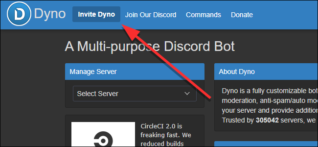 First, you’ll need to invite the Dyno bot to your server. To do that, head to this link and click Invite Dyno at the top left corner of the screen.