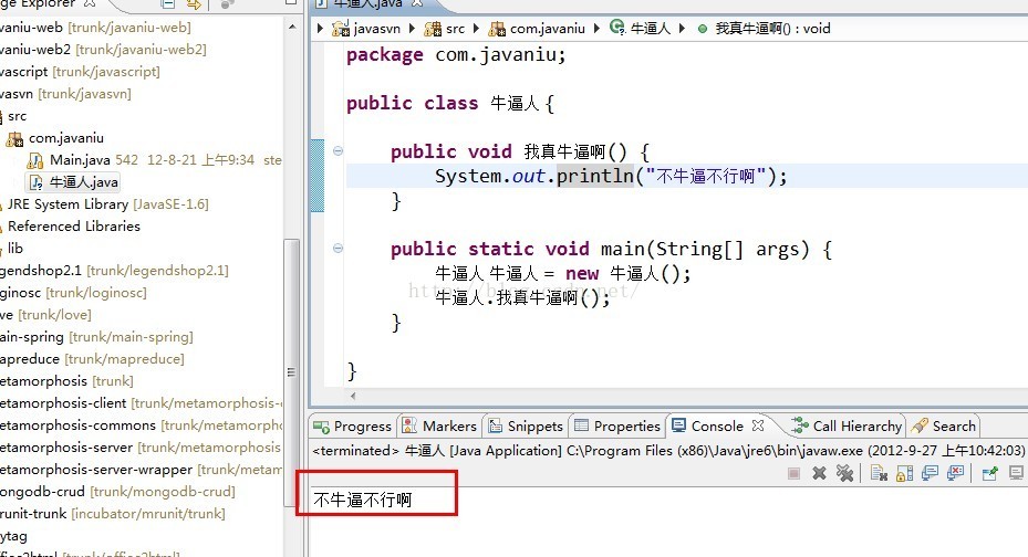 System.out.println("不牛逼不行啊");