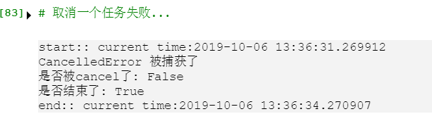 print('是否被cancel了:', task.cancelled()) # True,可以看出因为超时,task会被cancel