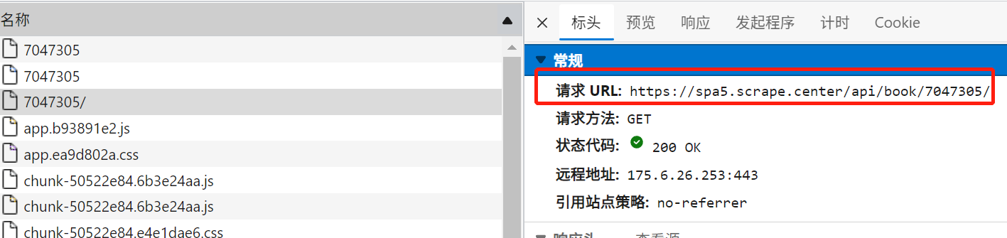 - 详情页的Ajax请求接口格式为:https://spa5.scrape.center/api/book/{id};
