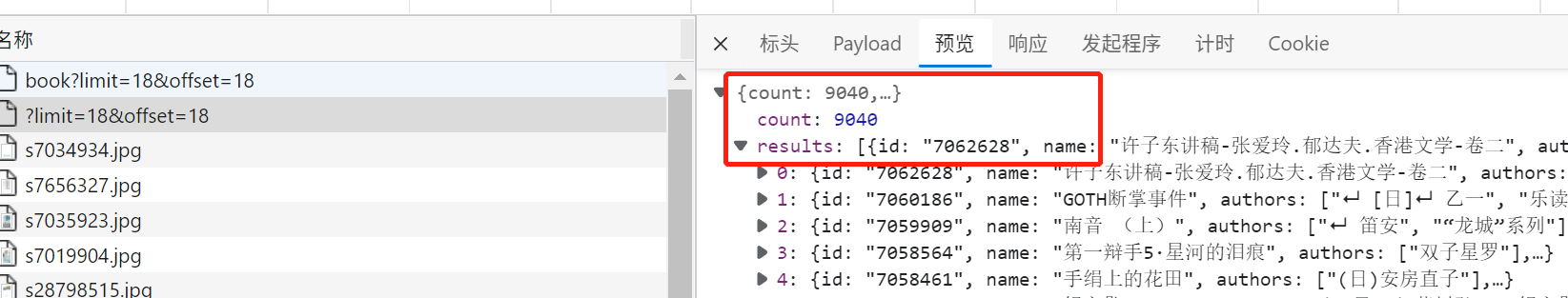 - 其中limit的值代表每一页包含多少本书,offset的值为每一页的偏移量,计算公式为offset=limit*(page-1),如第一页的offset值为0,第二页的offset值为18