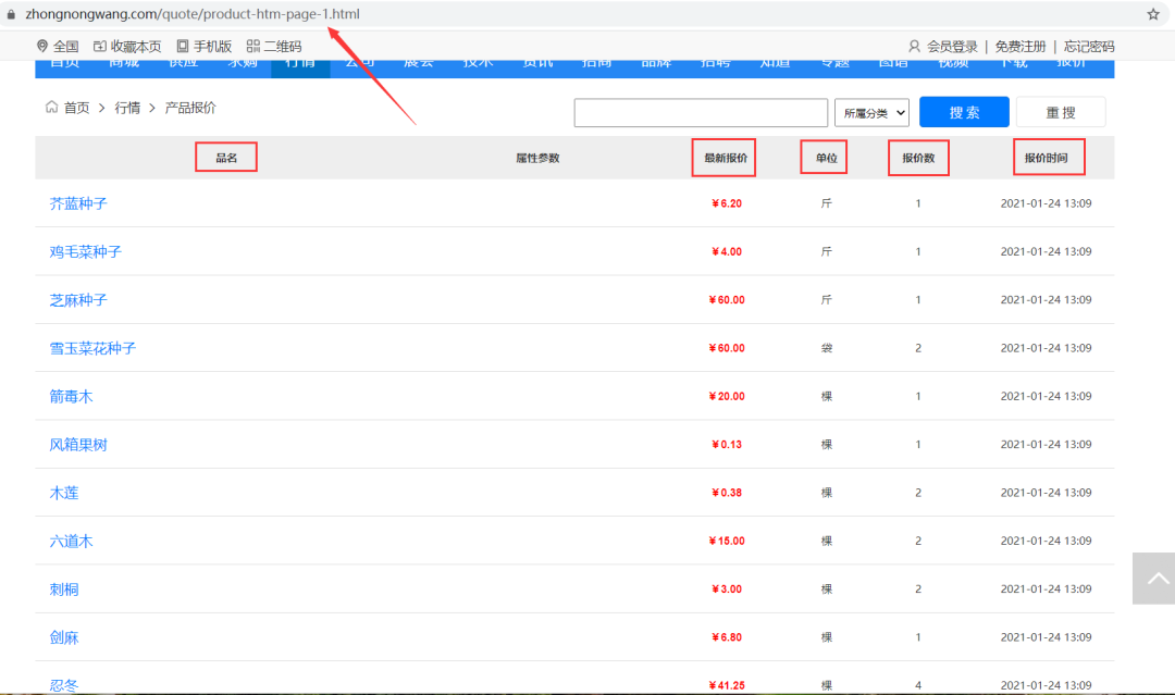 目标URL:https://www.zhongnongwang.com/quote/product-htm-page-1.html