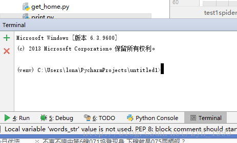 3.在pycharm里面打开terminal,这个有点类似cmd