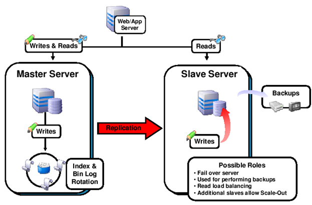 slave可以用做master的备份;slave可以分流读操作;备份到其他介质时,可从slave备份,而不增加master的负载。