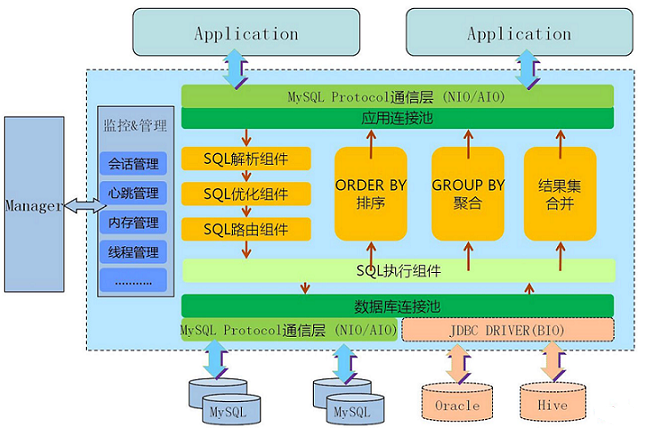 MyCat发展到目前的版本,已经不是一个单纯的MySQL代理了,它的后端可以支持MySQL、SQL Server、Oracle、DB2、PostgreSQL等主流数据库,也支持MongoDB这种新型NoSQL方式的存储,未来还会支持更多类型的存储。而在最终用户看来,无论是那种存储方式,在MyCat里,都是一个传统的数据库表,支持标准的SQL语句进行数据的操作,这样一来,对前端业务系统来说,可以大幅降低开发难度,提升开发速度。