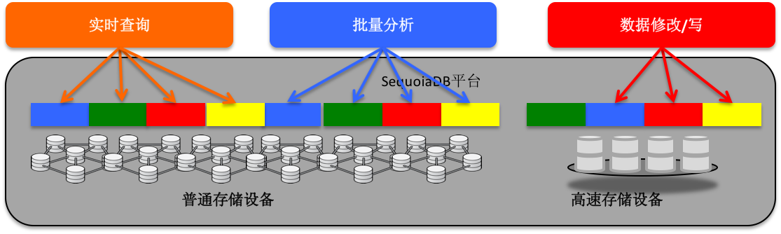 此外,可进一步定制数据分布策略,保证不同类型业务可以运行在同一平台上,但同时又不会互相干扰,比如“冷/热数据区分离”,写交易的“强一致性”和“弱一致性”分离以及“查询/批量分离”