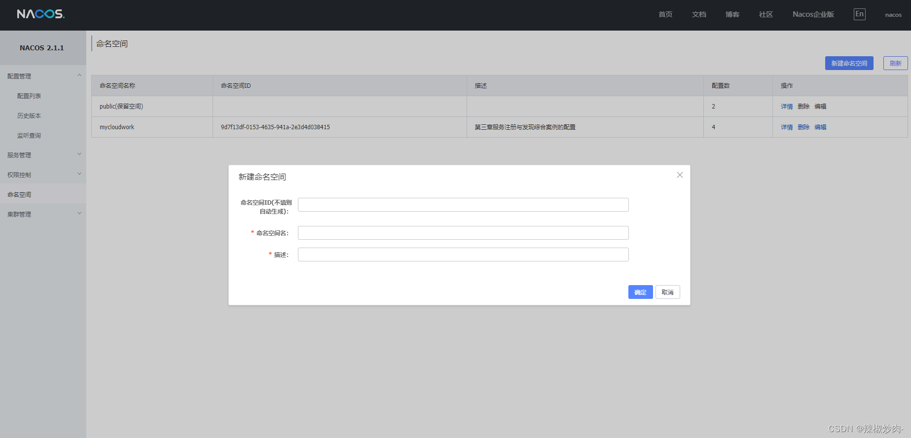 以上就是活泼小伙最近收集整理的关于微服务:Nacos将微服务注册到指定的命名空间下一、指定命名空间的好处二、创建一个命名空间?三、配置文件编写总结的全部内容,更多相关微服务:Nacos将微服务注册到指定内容请搜索靠谱客的其他文章。