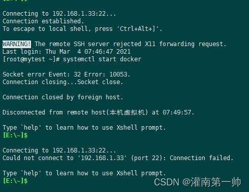 以上就是明亮小蝴蝶最近收集整理的关于启动Docker后ssh连接自动断开且无法连接原因分析解决手段的全部内容,更多相关启动Docker后ssh连接自动断开且无法连接原因分析解决手段内容请搜索靠谱客的其他文章。
