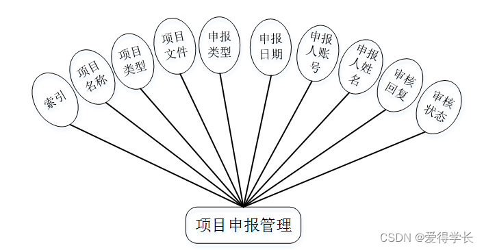 项目申报管理实体属性图,如图4-4所示: