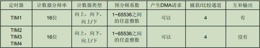 定时器都有一个16位的自动加载递加/递减计数器、一个16位的预分频器和4个独立的通道,每个通