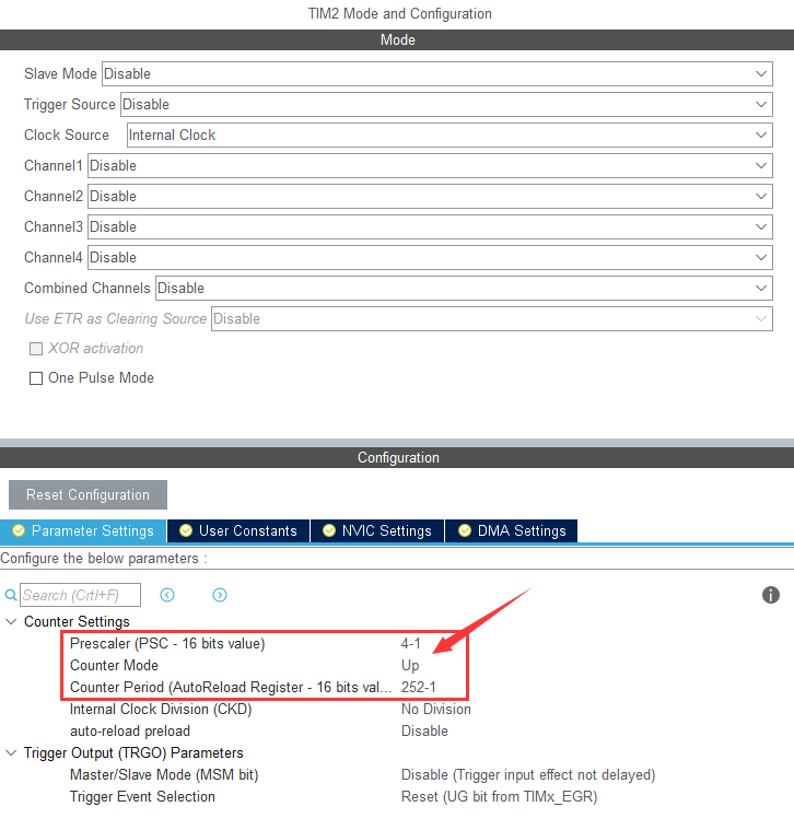 计数器从0x00计数到0xFC,定时周期为31746秒,使用STM32CuBeMX配置如下所示: