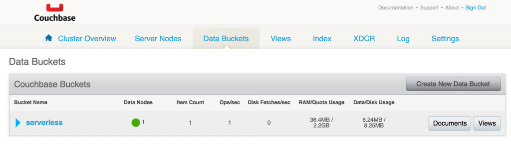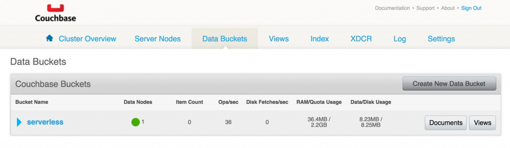 可以在http://<EC2-IP-Address>:8091/index.html#sec=buckets对此进行验证。 如预期的那样,存储桶中没有文档。