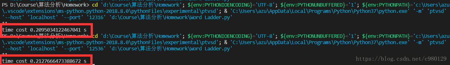 以下代码为测试代码,其中wordList有2855个数据,用以上算法在VScode调试下计时得6-7s,步数为11。