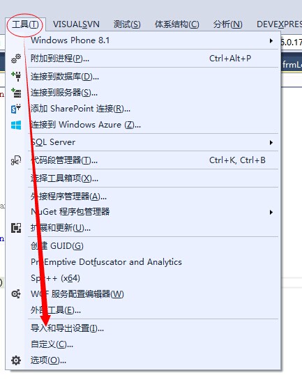 首先:打开工具菜单,选择“导入和导出设置”。