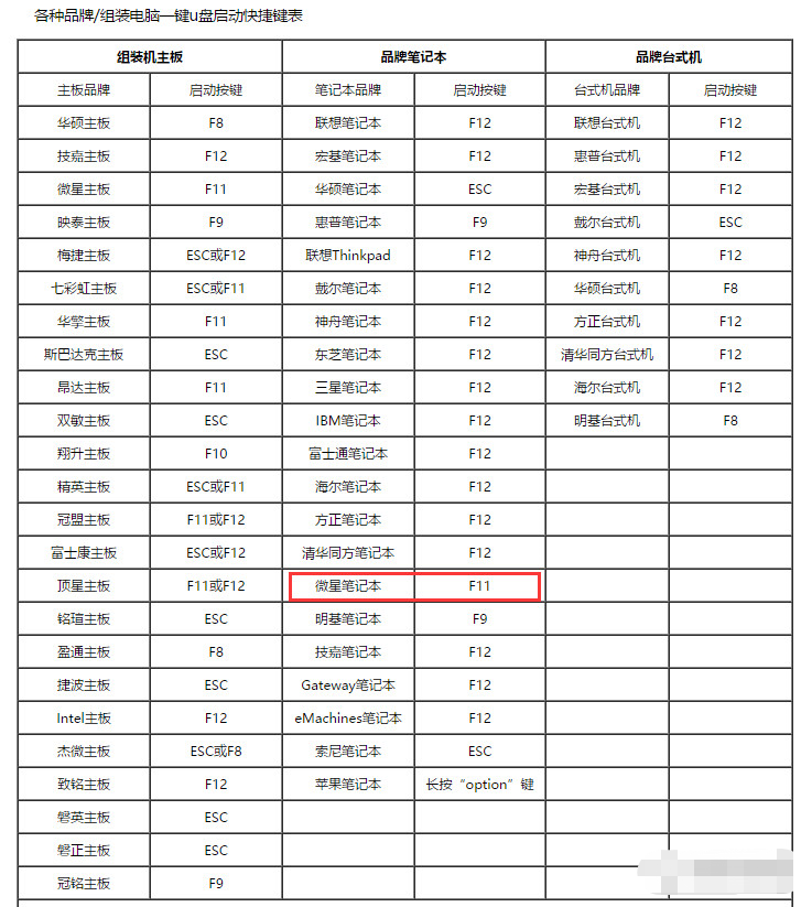 1.把制作好PE系统的U盘插在忘记密码的电脑上,开机后按「U盘启动快捷键」(快速连续按非长按)。各品牌电脑开机U盘启动快捷键如下图: