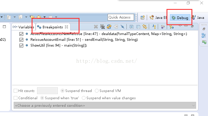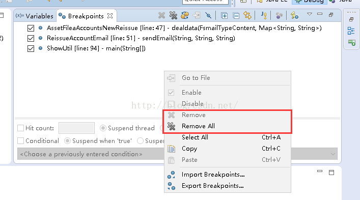 myeclipse或eclipse下debug模式启动很慢,原因是有eclipse或myeclipse启动debug时自动添加断点,所以必须删除一些东西。