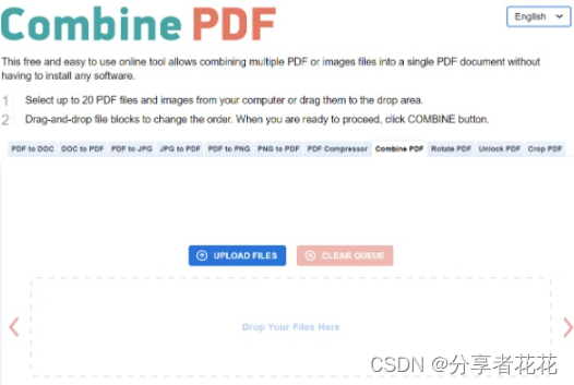 此在线工具允许您将多达 20 个 PDF 或图像文件合并为一个文档,并在此过程中重新排列页面。