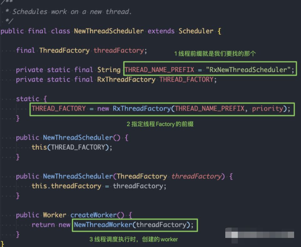 为了验证这个猜测,我们决定查阅下 RxJava 框架的源码,看看 RxNewThreadScheduler 这个线程到底是不是从RxJava 框架生成的。