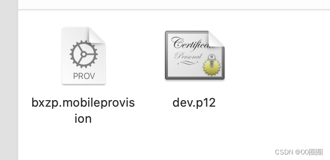 前言:iOS发展到现在,必须使用开发者账号才能运行,打包;但有时候跟别人合作开发,别人不会把开发者账号密码给你,只给了一个P12证书和mobileprovision描述文件(如下图)