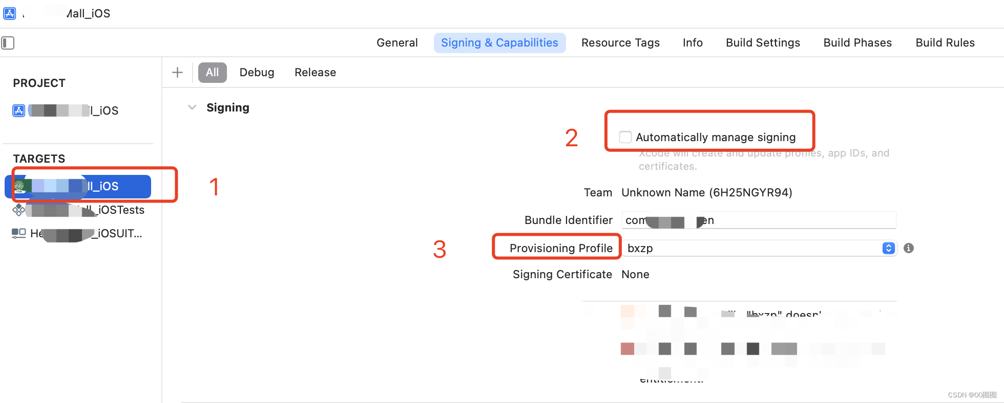 3.选择TARGETS--Signing&Capablilities (如下图)
