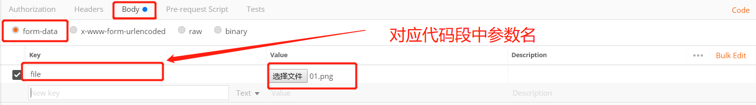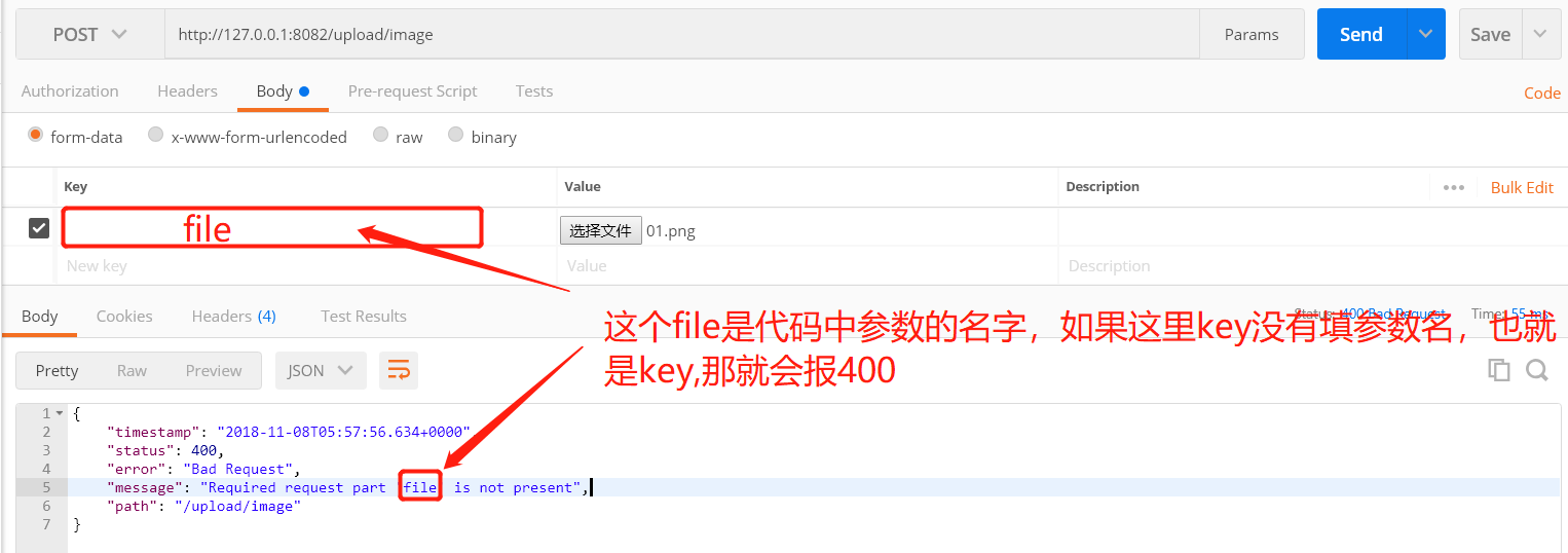 我是靠谱客的博主 强健胡萝卜,这篇文章主要介绍Postman图片上传用法以及Required request part file is not present的解决方法,现在分享给大家,希望可以做个参考。
