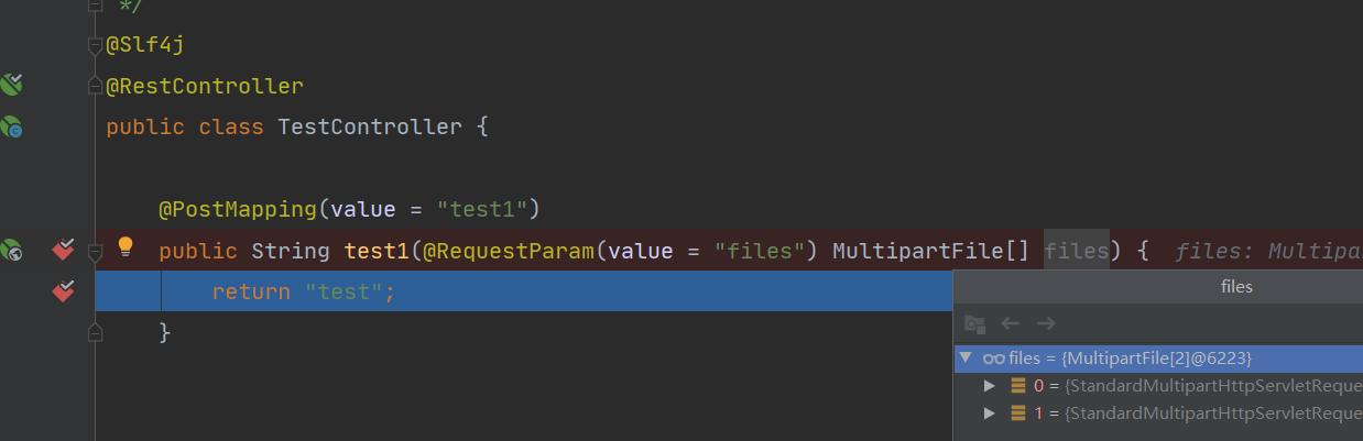 @RequestParam(value = "files") 这个注解当然也可以不加,不加的话,默认就是参数名files,也就是你自己定义的参数名;