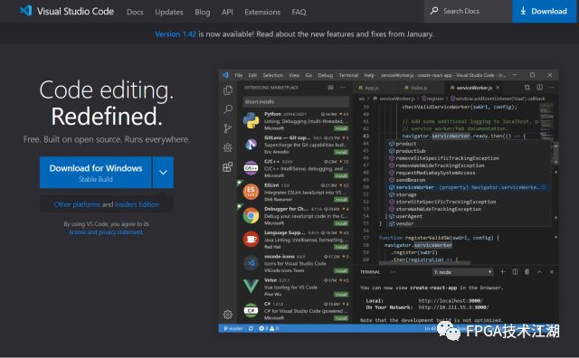 Visual Studio Code 可以从应用商店直接获取,这里,为了给大侠行个方便,也提供了安装包网盘链接。如何获取安装包网盘链接,请在“FPGA技术江湖”内回复“Vs Code”。