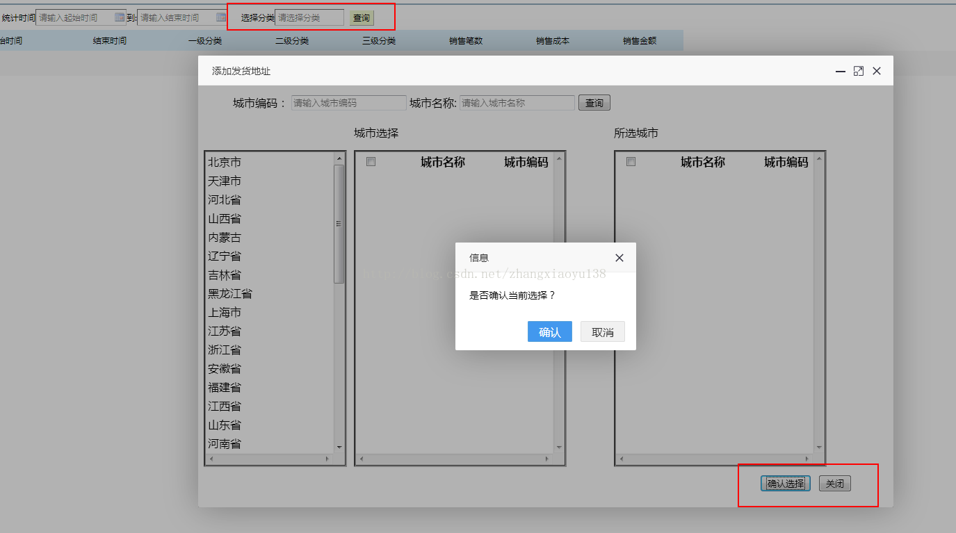 现有需求:统计页面为父页面,点击选择城市,显示弹窗。确定选择之后,弹窗关闭并且选定的城市s赋值到父页面输入框中。