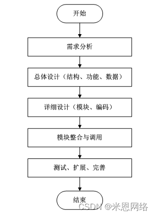 《Java EE开发技术》课程学习网站开发时,首先进行需求分析,进而对系统进行总体的设计规划,设计系统功能模块,数据库的选择等,本系统的开发流程如图3-1所示