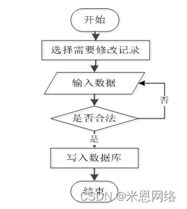 管理员可以对课程信息等进行的修改,学生也可以对自己权限内的信息进行修改,首先进入修改信息界面,输入修改信息数据,系统进行数据的判断验证,修改信息合法则修改成功,信息更新至数据库,信息不合法则修改失败,重新输入。修改信息流程图如图3-5所示。