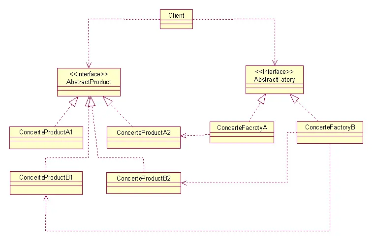 具体实现过程:在工厂方法的基础上,在一个具体工厂中实现生产不同产品的方法。可以达到方便生产一个“产品簇”的目的。