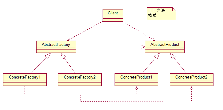 工厂方法模式非常符合“开闭原则”,当需要增加一个新的产品时,我们只需要增加一个具体的产品类和与之对应的具体工厂即可,无须修改原有系统。同时在工厂方法模式中用户只需要知道生产产品的具体工厂即可,无须关系产品的创建过程,甚至连具体的产品类名称都不需要知道。虽然他很好的符合了“开闭原则”,但是由于每新增一个新产品时就需要增加两个类,这样势必会导致系统的复杂度增加。其UML结构图: