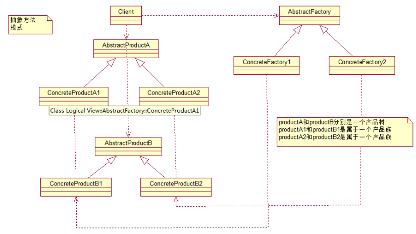 所谓抽象工厂模式就是提供一个接口,用于创建相关或者依赖对象的家族,而不需要明确指定具体类。他允许客户端使用抽象的接口来创建一组相关的产品,而不需要关系实际产出的具体产品是什么。这样一来,客户就可以从具体的产品中被解耦。它的优点是隔离了具体类的生成,使得客户端不需要知道什么被创建了,而缺点就在于新增新的行为会比较麻烦,因为当添加一个新的产品对象时,需要更加需要更改接口及其下所有子类。其UML结构图如下:
